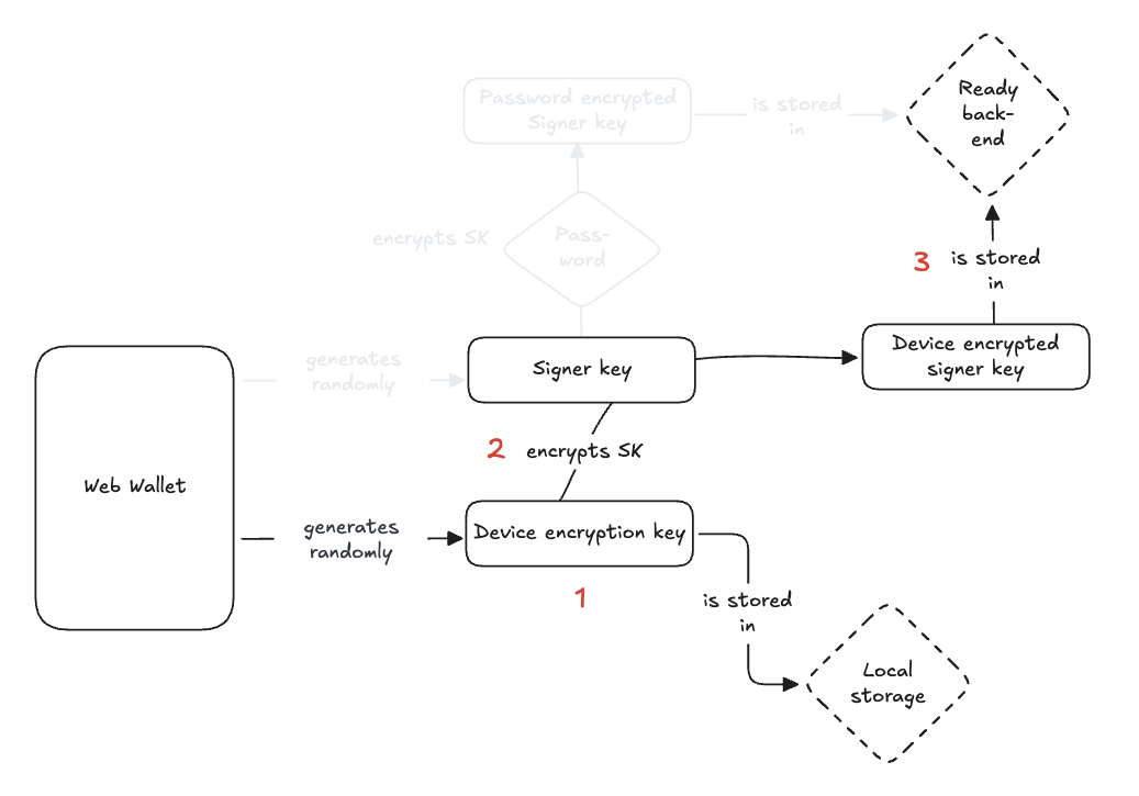 Web wallet generates a device encryption key that is stored in the browser local storage